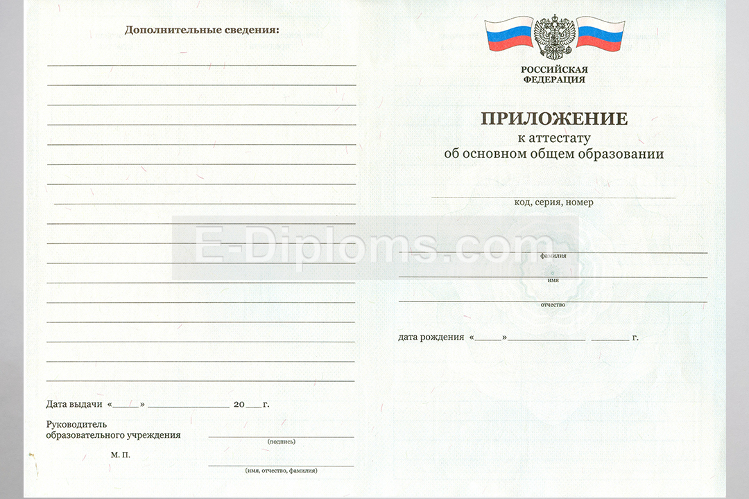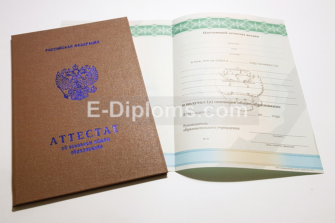 У нас на сайте Вы можете заказать аттестат об окончании 9 классов с 2010 по 2013 года включительно. Выбирайте любую школу России, а мы изготовим качественный документ быстро, профессионально, анонимно. Доставка бесплатна, оплата при получении, для проживающих в регионах доступна услуга «макет», есть скидки. При заказе до 14.00 привезем уже завтра!