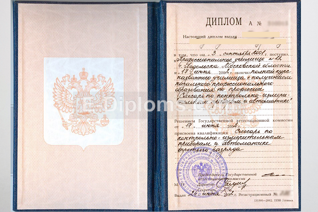 У нас на сайте Вы можете заказать диплом о начальном профессиональном образовании с окончанием любого ПТУ России в период с 1996 по 2006 года включительно. Сделаем диплом по любой профессии, который подойдет для работы в интересующей Вас сфере. Доставка бесплатна, оплата при получении, для проживающих в регионах доступна услуга «макет», есть скидки. При заказе до 14.00 привезем уже завтра!