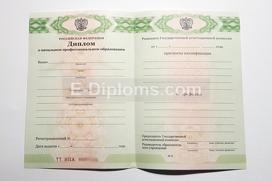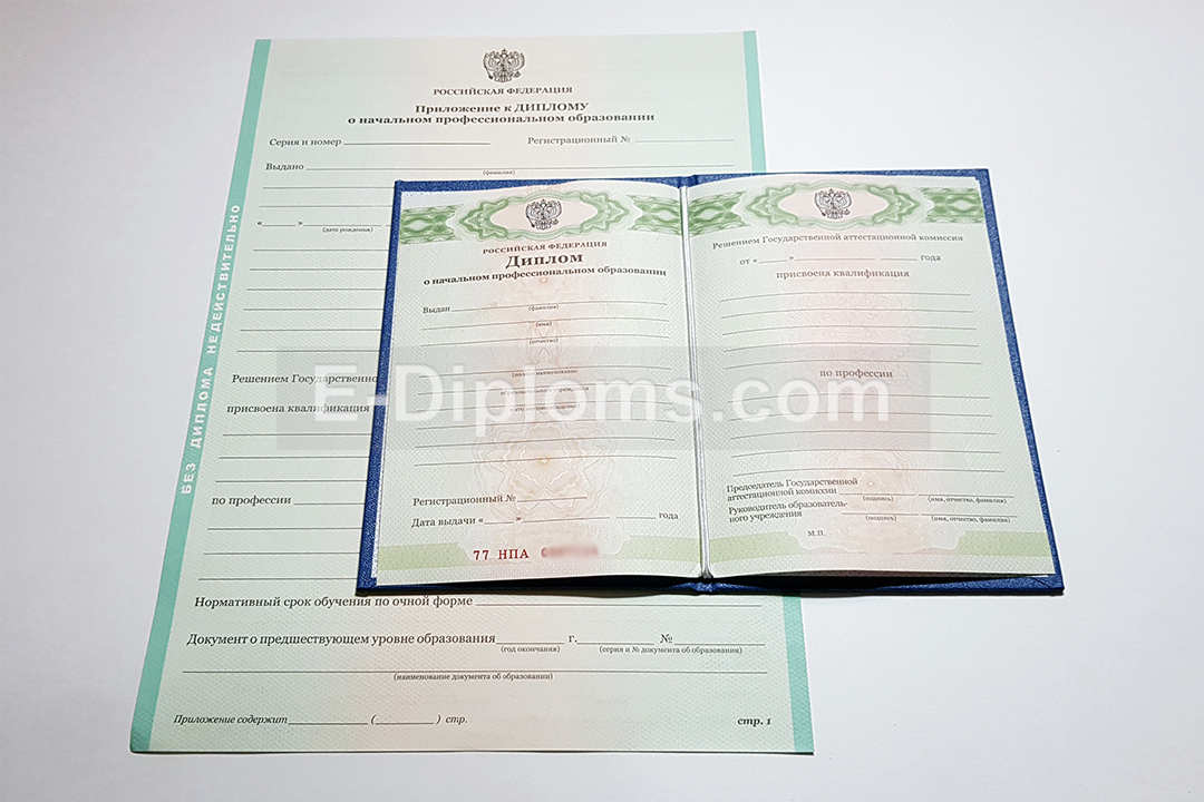 У нас на сайте Вы можете заказать диплом о начальном профессиональном образовании с окончанием любого ПТУ России в период с 2011 по 2013 года включительно. Сделаем диплом по любой профессии, который подойдет для работы в интересующей Вас сфере. Доставка бесплатна, оплата при получении, для проживающих в регионах доступна услуга «макет», есть скидки. При заказе до 14.00 привезем уже завтра!
