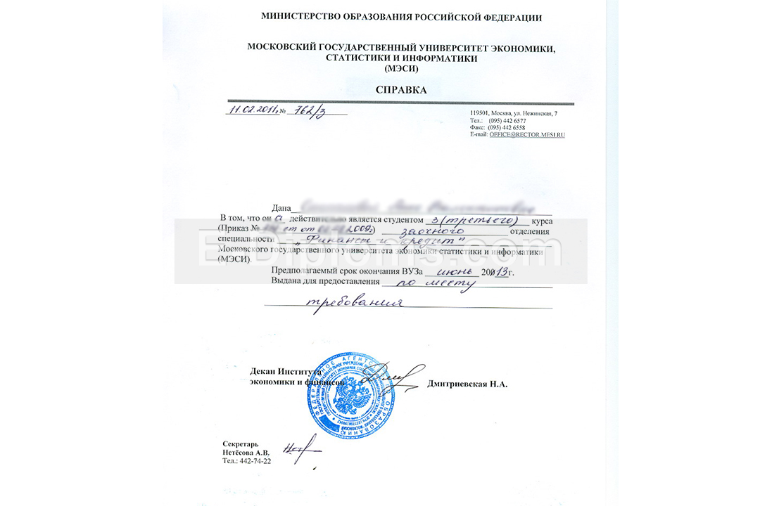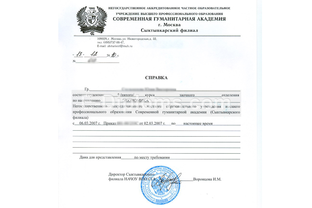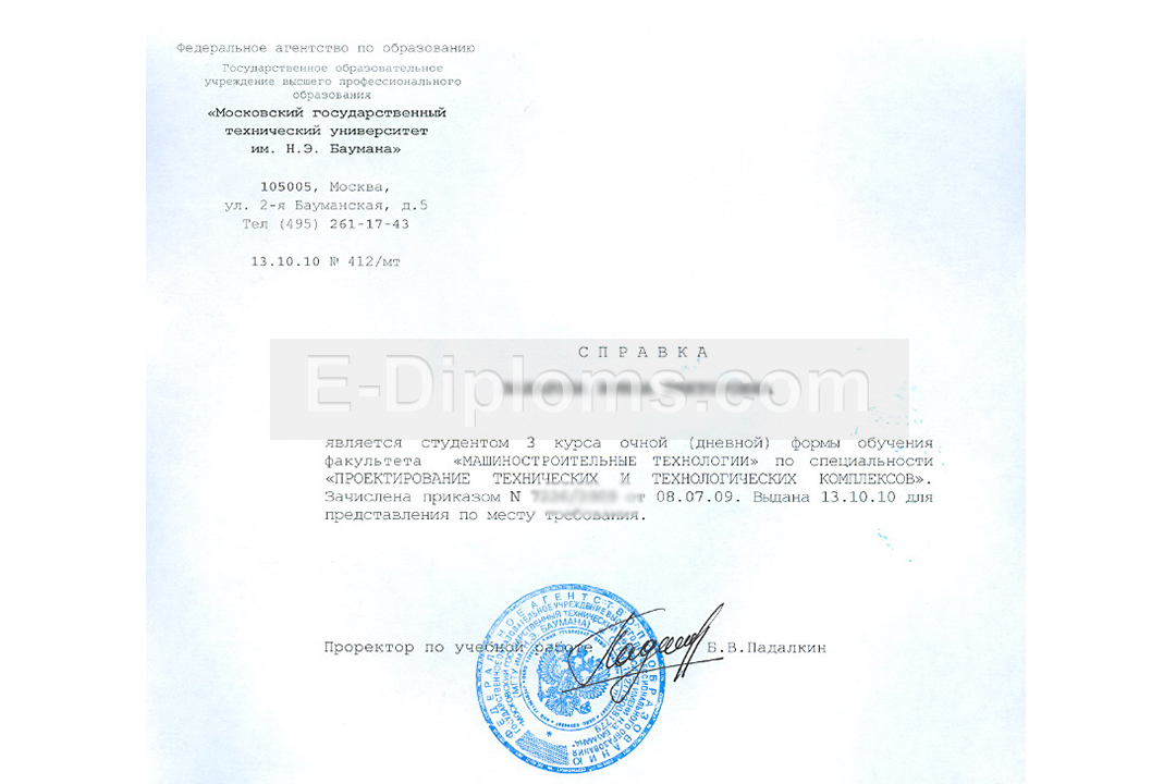 Вы можете купить справку об обучении, подтверждающую факт того, что в настоящее время Вы или Ваш ребёнок являетесь студентом вуза, колледжа или учеником общеобразовательной школы. Помимо Ф.И.О справка обязательно содержит информацию об учебном заведении, курсе (классе) обучения, номере приказа о зачислении. Заполняем по образцу выбранного учебного заведения. Доставка бесплатна, оплата при получении, для проживающих в регионах доступна услуга «макет», есть скидки. При заказе до 14.00 привезем уже завтра!